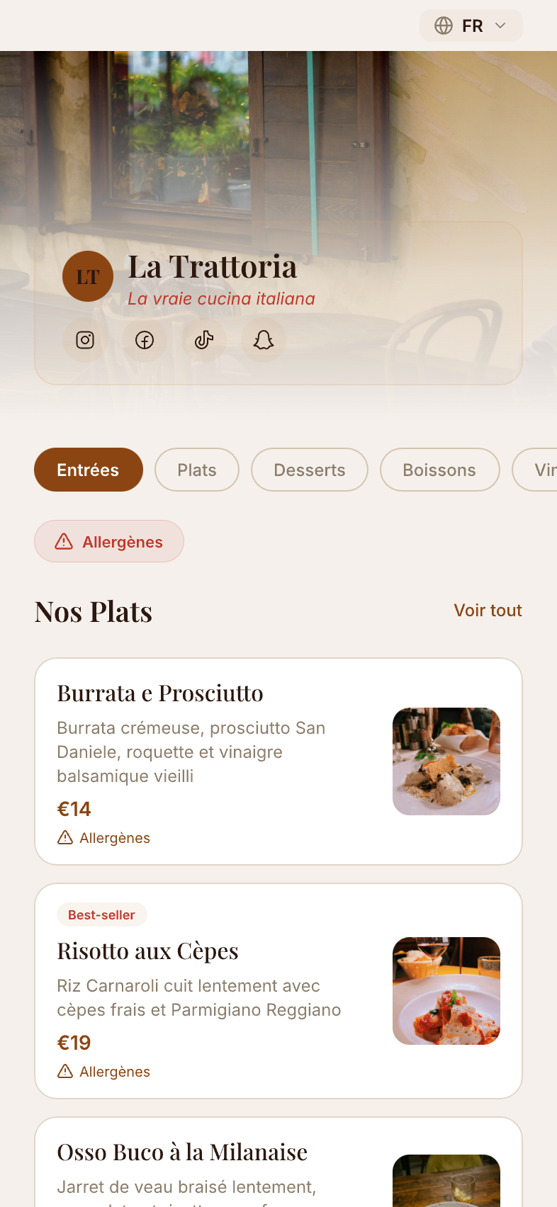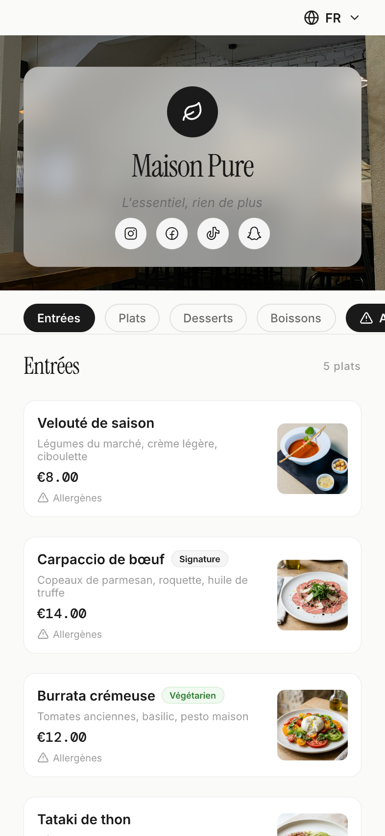 Chaque restaurant a son identité. Choisissez le design qui vous ressemble.