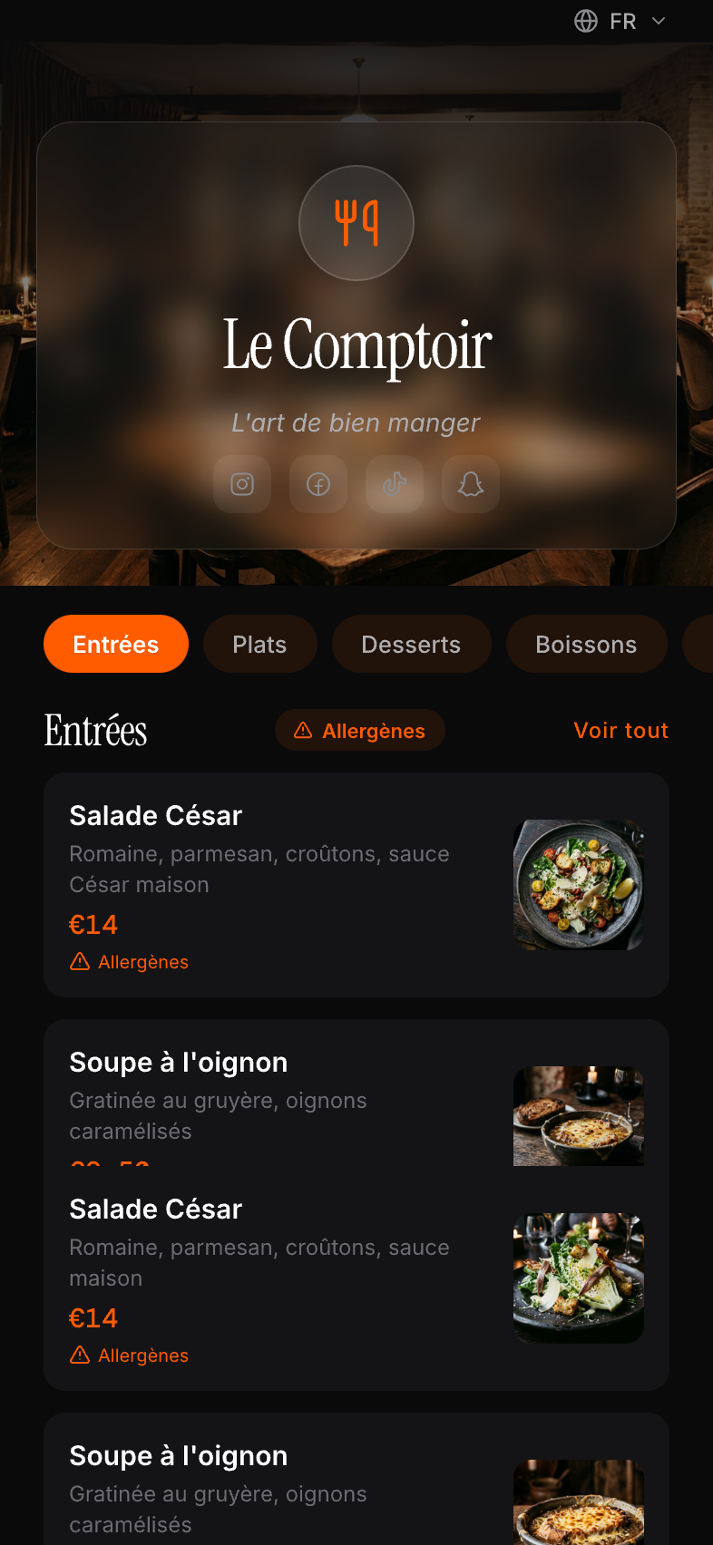 Créez votre menu QR code, sublimez vos photos de plats avec l'IA, et offrez à vos clients une expérience digitale moderne.